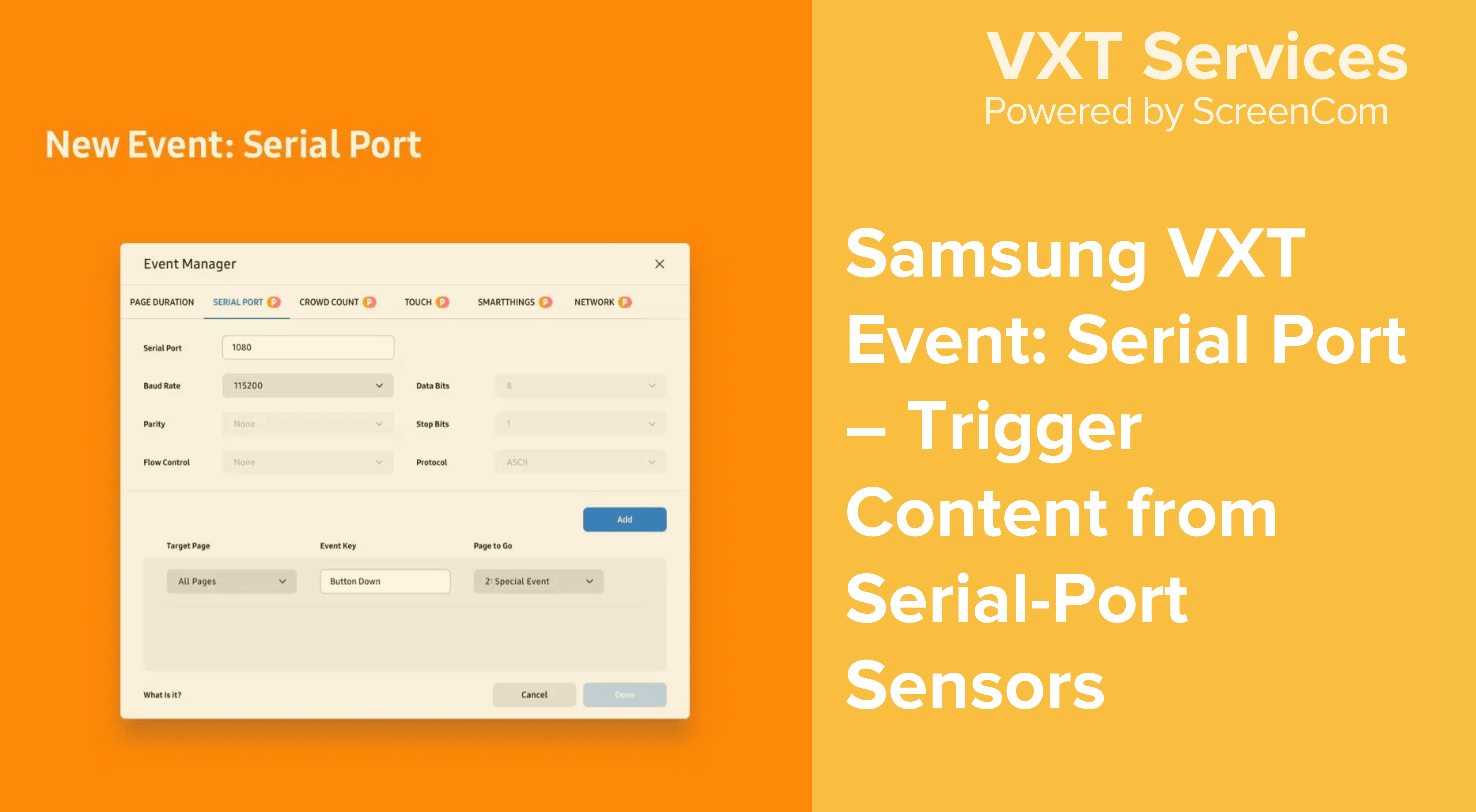 Samsung VXT Event: Serial Port – Trigger Content Changes from Serial-Port Sensors